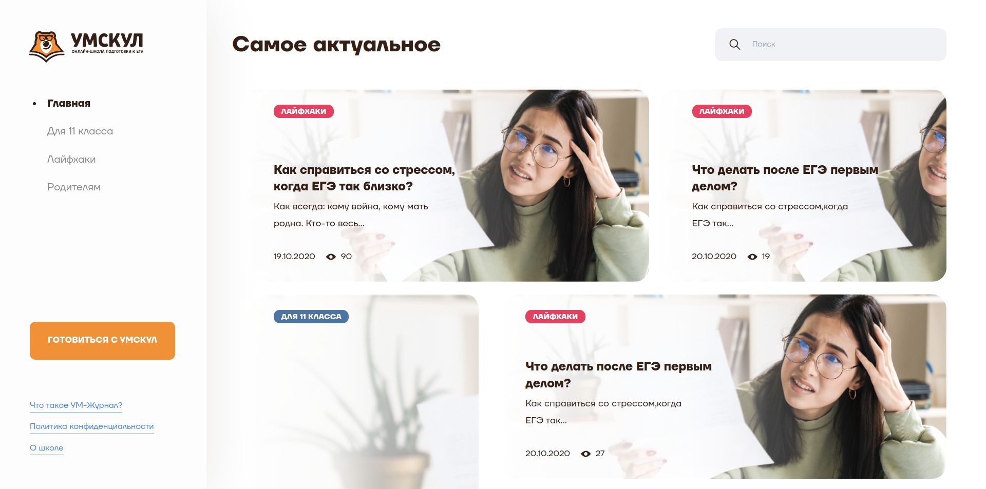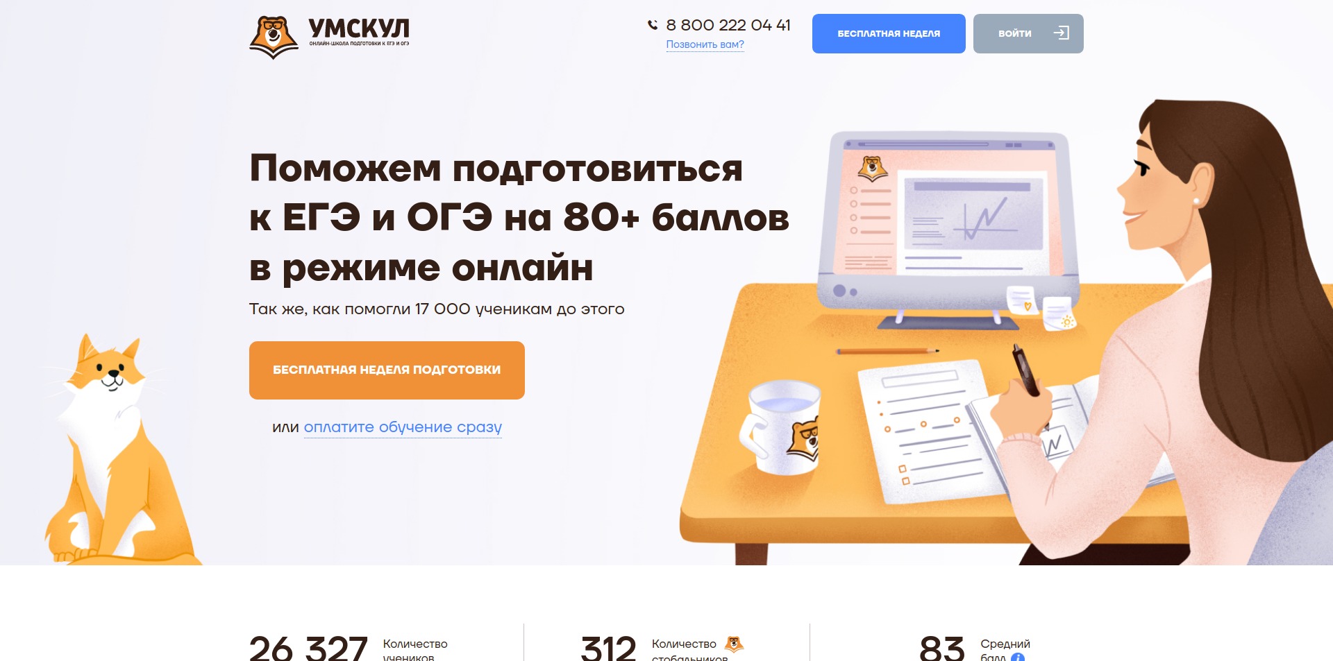 Верстка сайта для онлайн-школы «УМСКУЛ»